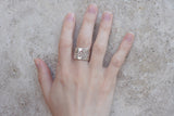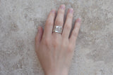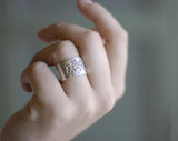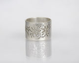 טבעת כסף 925 מנוסרת דוגמאות של פרחים ועלים עדינים. בטבעת זו הושקעה הרבה תשומת לב וזמן שכן הפרטים בה הם כ"כ מדויקים וקטנים ונוסרו בעבודת יד מלאה ללא שימוש במכונות.
