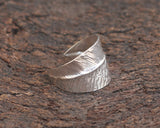 טבעת עלה כסף - טבעת נוצה מתכווננת