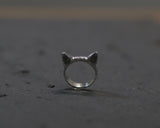 טבעת מדהימה בצורת ראש של חתול עם אוזניים מתוקות עומדות.