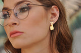 העגיל עשוי מפליז ומצופים זהב איכותי ללא ניקל בגימור מט. החלק שנכנס לאוזן עשוי מכסף מצופה זהב, ולכן היפו אלרגני ומגיע עם סוגר סיליקון.