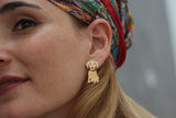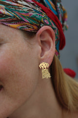 העגילים עשויים מפליז ומצופים זהב איכותי ללא ניקל בגימור מט. המוטות שנכנסים לאוזן עשויים מכסף מצופה זהב, ולכן היפו אלרגניים ומגיעים עם סוגרי סיליקון.