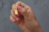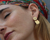 העגילים עשויים מפליז ומצופים זהב איכותי ללא ניקל בגימור מט. המוטות שנכנסים לאוזן עשויים מכסף מצופה זהב, ולכן היפו אלרגניים ומגיעים עם סוגרי סיליקון.