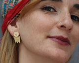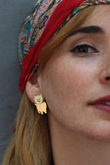 העגיל עשוי מפליז ומצופה זהב איכותי ללא ניקל בגימור מט. החלק שנכנס לאוזן עשוי מכסף מצופה זהב, ולכן היפו אלרגני ומגיע עם סוגר סיליקון.