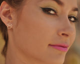 העגילים עשויים מפליז ומצופים זהב איכותי בגימור מט. המוטות שנכנסים לאוזן עשויים מכסף, ולכן היפואלרגניים ומגיעים עם סוגרי סיליקון.