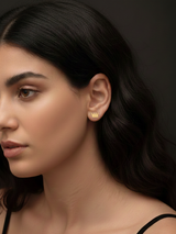 העגילים עשויים מפליז ומצופים בזהב איכותי בגימור מט (ללא ניקל). המוט שנכנס לאוזן עשוי מכסף 925 ולכן היפו-אלארגני, העגילים מגיעים עם סוגרי סיליקון.