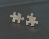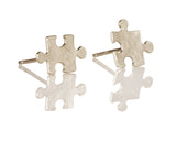 עגילי כסף קטנים בצורת חלקי פאזל שונים.