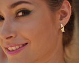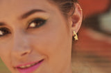 העגילים עשויים מפליז ומצופים זהב איכותי ללא ניקל בגימור מט. המוטות של העגילים שנכנסים לאוזן עשויים מכסף, ולכן היפואלרגניים ומגיעים עם סוגרי סיליקון חזקים ונוחים.