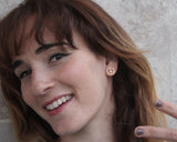 העגילים עשויים מפליז ומצופים זהב איכותי ללא ניקל, בגימור מט. המוט של העגילים שנכנסים לאוזן עשויים מכסף, ולכן היפואלרגניים ומגיעים עם סוגרי סיליקון.
