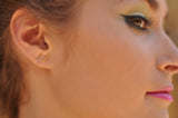 העגילים עשויים מפליז ומצופים זהב איכותי ללא ניקל בגימור מט. המוטות של העגילים שנכנסים לאוזן עשויים מכסף, ולכן היפו אלרגניים ומגיעים עם סוגרי סיליקון נוחים וחזקים.