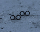 העגילים עשויים מפליז עם מוטות מכסף 925, ומצופים בציפוי שחור איכותי ועבה ללא ניקל, ומגיעים עם סוגרי סיליקון.