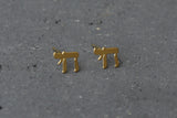 עגילים מוזהבים, קטנים וחמודים עם הכיתוב חי.