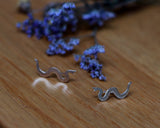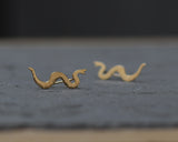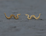 העגילים עשויים מפליז ומצופים זהב איכותי ללא ניקל בגימור מט. העגילים עם ריקוע בחלק התחתון שלהם, על מנת לדמות טקסטורה של נחש.