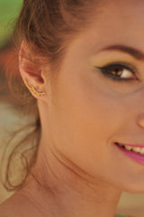 העגילים עשויים מפליז ומצופים זהב איכותי ללא ניקל בגימור מט.