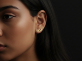 זוג עגילי בועות מטפסים, מאורכים שמעוצבים בצורה שמשתלבת בצורה של תנוך האוזן.