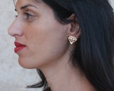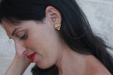 עגילים מוזהבים בצורת יהלום צמודים לאוזן
