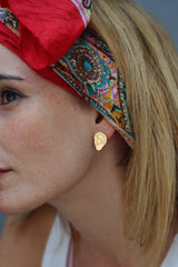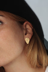 עגילי האוזניים המקוריים האלה עשויים מפליז ומצופים זהב איכותי ללא ניקל. המוטות שנכנסים לאוזן עשויים מכסף, ולכן היפואלרגניים ומגיעים עם סוגרי סיליקון.