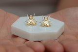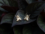 עגילים מקוריים וחמודים של זבובים, עשויים מפליז ומצופים זהב איכותי ללא ניקל. המוטות שנכנסים לאוזן עשויים מכסף, ולכן היפואלרגניים ומגיעים עם סוגרי סיליקון.