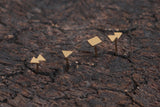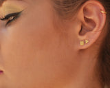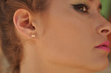 העגילים עשויים מפליז ומצופים זהב איכותי ללא ניקל בגימור מט. המוטות של העגילים שנכנסים לאוזן עשויים מכסף, ולכן היפו אלרגניים ומגיעים עם סוגרי סיליקון.