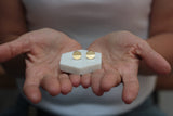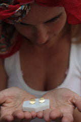 העגילים עשויים מפליז ומצופים זהב איכותי ללא ניקל. המוטות של העגילים עשויים מכסף, ולכן היפו אלרגניים ומגיעים עם סוגרי סיליקון חזקים ונוחים.