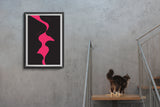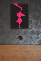 ההדפס בשחור עם רקע מג'נטה-ורוד.