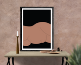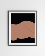 הדפס בעיצוב מקורי שלי של אישה מלאה עירומה, עם גוף ש"אינו מושלם", אבל מהמם, שוכבת.
