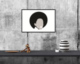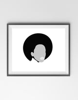 פוסטר בעיצוב מקורי שלי של אישה עם כובע בשחור לבן וגווני אפור.