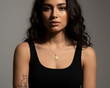 התליון עשוי פליז ומצופה זהב איכותי ועבה (ללא ניקל) בגימור מט, על גבי שרשרת גולדפילד עדינה.