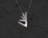 שרשרת תלת מימדית בצורת יד "הכל בסדר" בשפת הסימנים מכסף