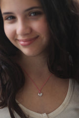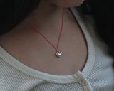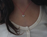 שרשרת לב מכסף על גבי שרשרת חוט צבעוני