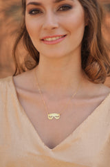 התליון עשוי מפליז ומצופה זהב איכותי (ללא ניקל) בגימור מט. השרשרת עליה תלוי התליון מגולדפילד.