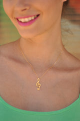 שרשרת גולדפילד עדינה בצורת מפתח סול מוזהב עם ריקוע מיוחד.