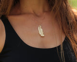 התליון עשוי בצורת נוצה ויש עליו מרקם של שריטות שמדמה את מרקם הנוצה.