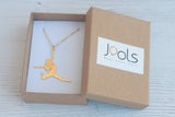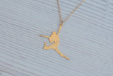 התליון בצורת סילואטה של רקדנית קופצת עשוי פליז מרוקע ומצופה זהב באיכות גבוהה, על גבי שרשרת גולדפילד. גולדפילד מציעה את אותן תכונות פיזיות כמו זהב; יופי, יוקרה, איכות ועמידות לאורך זמן.