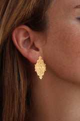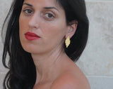 העגילים עשויים מפליז ומצופים זהב איכותי ועבה (ללא ניקל) בגימור מט. המוטות של העגילים עשויים מכסף, ולכן היפואלרגניים ומגיעים עם סוגרי סיליקון נוחים וחזקים.