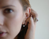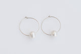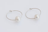 עגילי חישוק מכסף עם פנינה לבנה