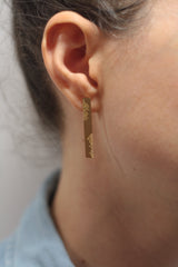 עגילי מוט מלבן ארוך עם פסים צמודים