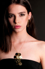 העגילים עשויים בעבודת יד מלאה בטכניקות של ריקוע, ניסור, שיוף, הלחמה וליטוש. העגילים עשויים מפליז מצופה זהב איכותי בגימור מט. המוטות שנכנסים עשויים מכסף, ולכן היפואלרגניים ומגיעים עם סוגרי סיליקון עמידים ונוחים.