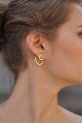 העגילים עשויים מפליז ומצופים זהב עבה ואיכותי ללא ניקל בגימור מט. המוטות שנכנסים לאוזן עשויים מכסף מצופה זהב, ולכן היפואלרגניים ומגיעים עם סוגרי סיליקון.