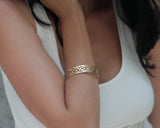 צמיד מיוחד זה בסגנון תחרה עדינה עשוי מפליז ומצופה זהב איכותי ללא ניקל.