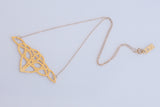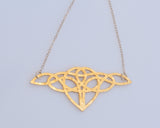 התליון בצורת עיטור צלטי (סקוטי) עשוי פליז ומצופה זהב באיכות גבוהה בגימור מט, על גבי שרשרת גולדפילד; גולדפילד מציע את אותן תכונות פיזיות כמו זהב; יופי, יוקרה, איכות ועמידות לאורך זמן.