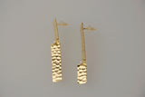 עגילים מלבן ארוכים אסימטריים מוזהבים מרוקעים