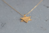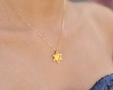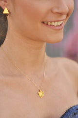 שרשרת מקסימה עם תליון של מגן דוד, המורכב משני משולשים, אחד מלא ואחד חלול, המונחים אחד על השני.