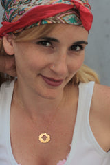 התליון עשוי פליז ומצופה זהב איכותי ועבה (ללא ניקל) בגימור מט, על גבי שרשרת גולדפילד עדינה.