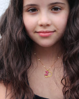 שרשרת מיני מאוס זהב עם פפיון ורוד עם נקודות
