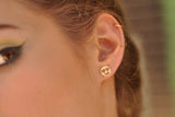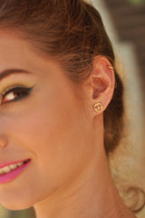 העגילים עשויים מפליז ומצופים זהב איכותי ללא ניקל בגימור מט. המוטות שנכנסים לאוזן עשויים מכסף, ולכן היפואלרגניים ומגיעים עם סוגרי סיליקון.