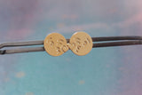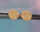 העגילים עשויים מפליז ומצופים זהב איכותי ללא ניקל. המוטות שנכנסים לאוזן עשויים מכסף, ולכן היפואלרגניים ומגיעים עם סוגרי סיליקון.
