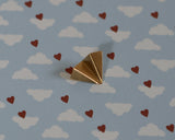 סיכה קטנה, מקורית ומעניינת של מטוס אוריגמי מוזהב קטן.