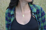 התליון עשוי פליז מרוקע ומצופה זהב איכותי ועבה, ללא ניקל, על גבי שרשרת גולדפילד; גולדפילד מציע את אותן תכונות פיזיות כמו זהב; יופי, יוקרה, איכות ועמידות לאורך זמן.