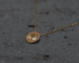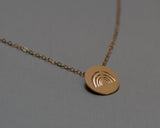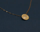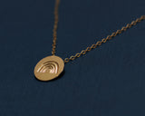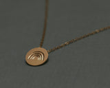 שרשרת מתוקה עם דיסקית עגולה שבתוכה חריטה של קשת בענן בתוכה.