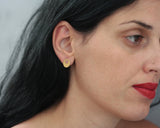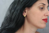 The earrings are made of brass with a fine texture, and plated with high-quality nickel-free gold with a matte finish. The rods that go into the ear are made of silver, therefore hypoallergenic and come with silicone brackets.